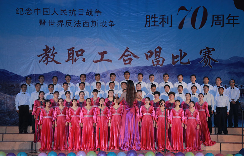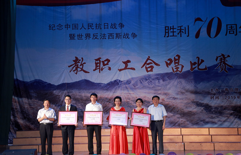 9月28日、29日,学校纪念中国人民抗日战争暨世界反法西斯战争胜利70周年教职工合唱比赛先后在黄岛校区、市北校区举行。校党委书记薛允洲,校党委副书记杨向荣、刘龙海,副校长李东、李国华出席比赛。