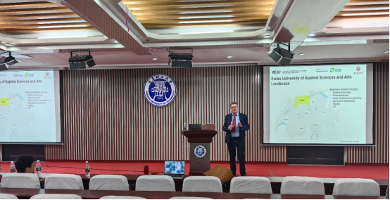 Pieter以“Bridging Innovations: Forging the future through Chinese-Swiss collaboration”为主题进行了报告。Pieter从我校与瑞士西北应用科学与艺术大学合作的成功案例、合作过程中学生的作用以及创新的重要性等几个方面进行了详细的介绍,对于中国和瑞士在企业管理创新方面的异同点进行了深入分析,对中瑞双方未来在创新方面的合作进行了展望。